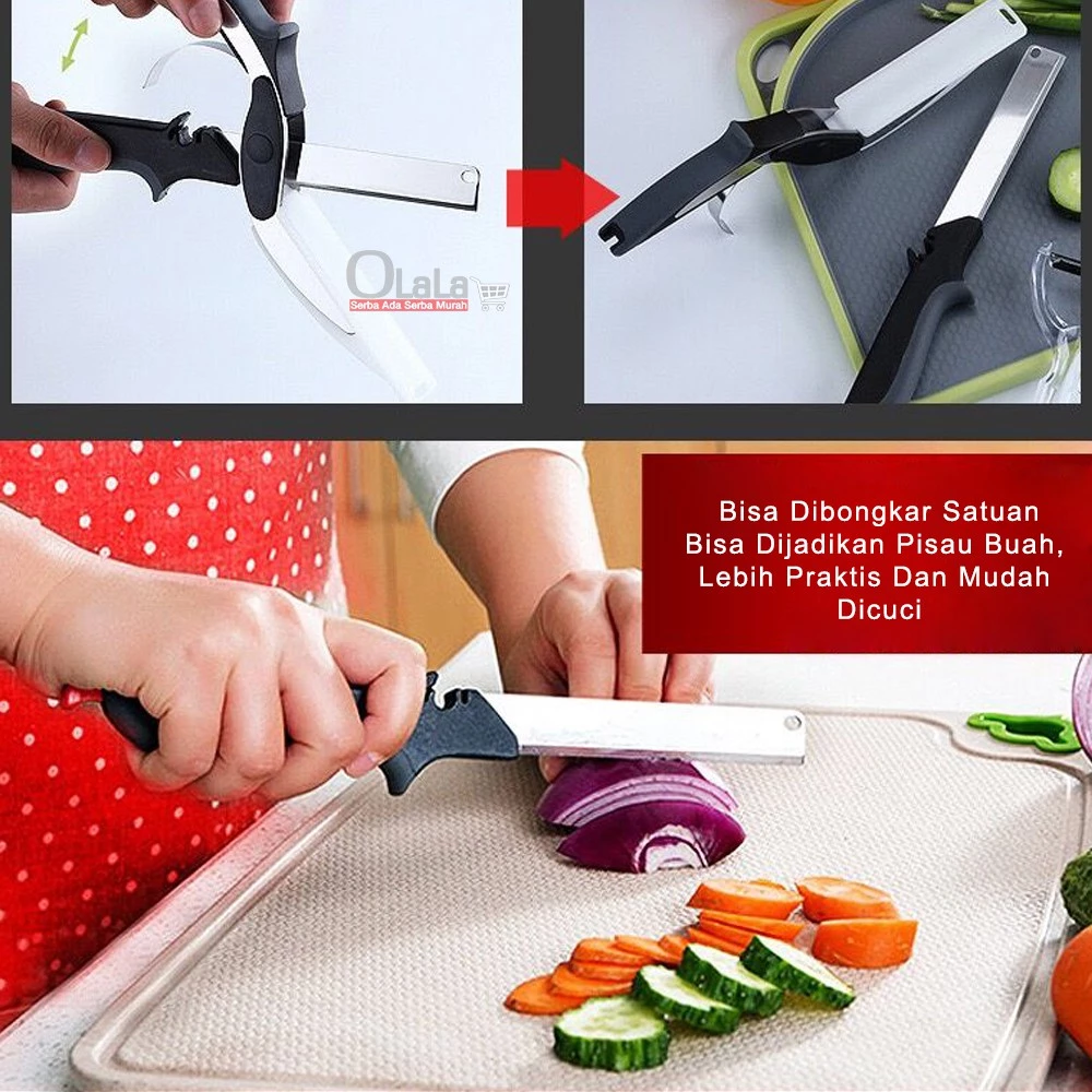 Paduan sempurna pisau tajam dan talenan portabel menghemat waktu persiapan memasak Anda tanpa mengotori banyak wadah.